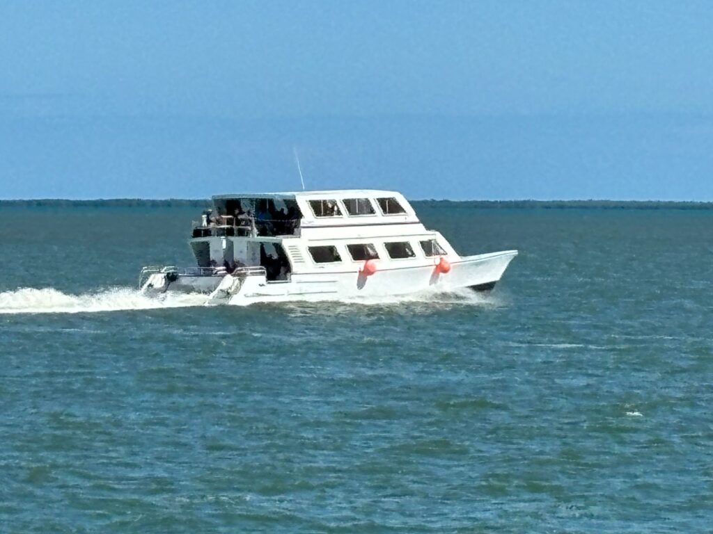 まず、浅瀬でクルーズ船が岸壁まで行けないので
