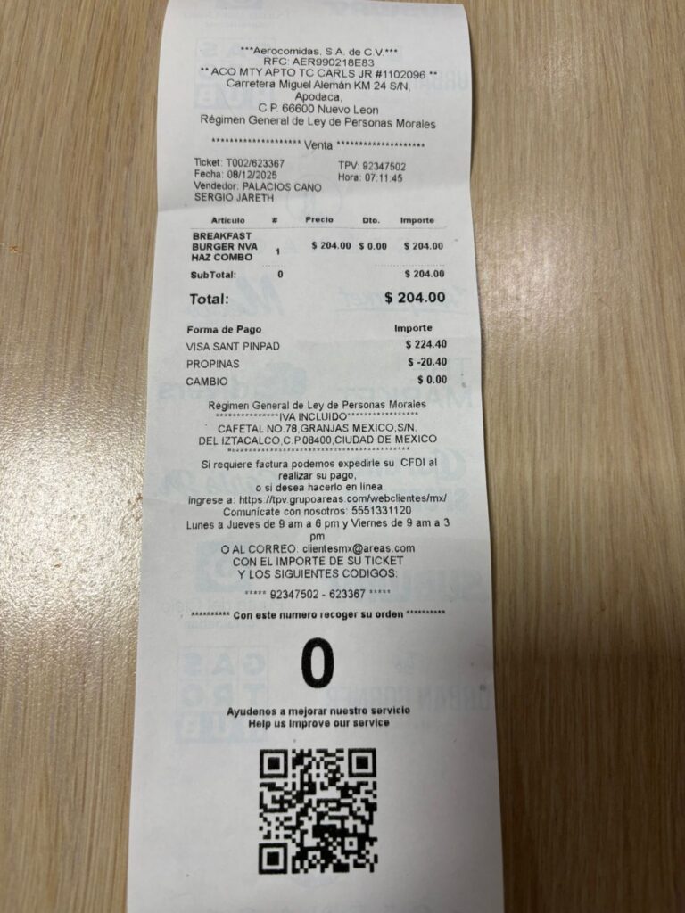 【小ネタ】メキシコの整理番号 2025 12/22 生活 2025年12月22日 ちょっとした小ネタです。 出張で空港のCarl’s Jrに行ったところまだ準備中。 少し待って、その日最初にオーダーしました。 整理番号をもらったけど、0番! 日本の場合、1番からスタートだけど。 どうでもいいけど、ちょっとしたネタです。 生活 よかったらシェアしてね! URLをコピーしました! URLをコピーしました!