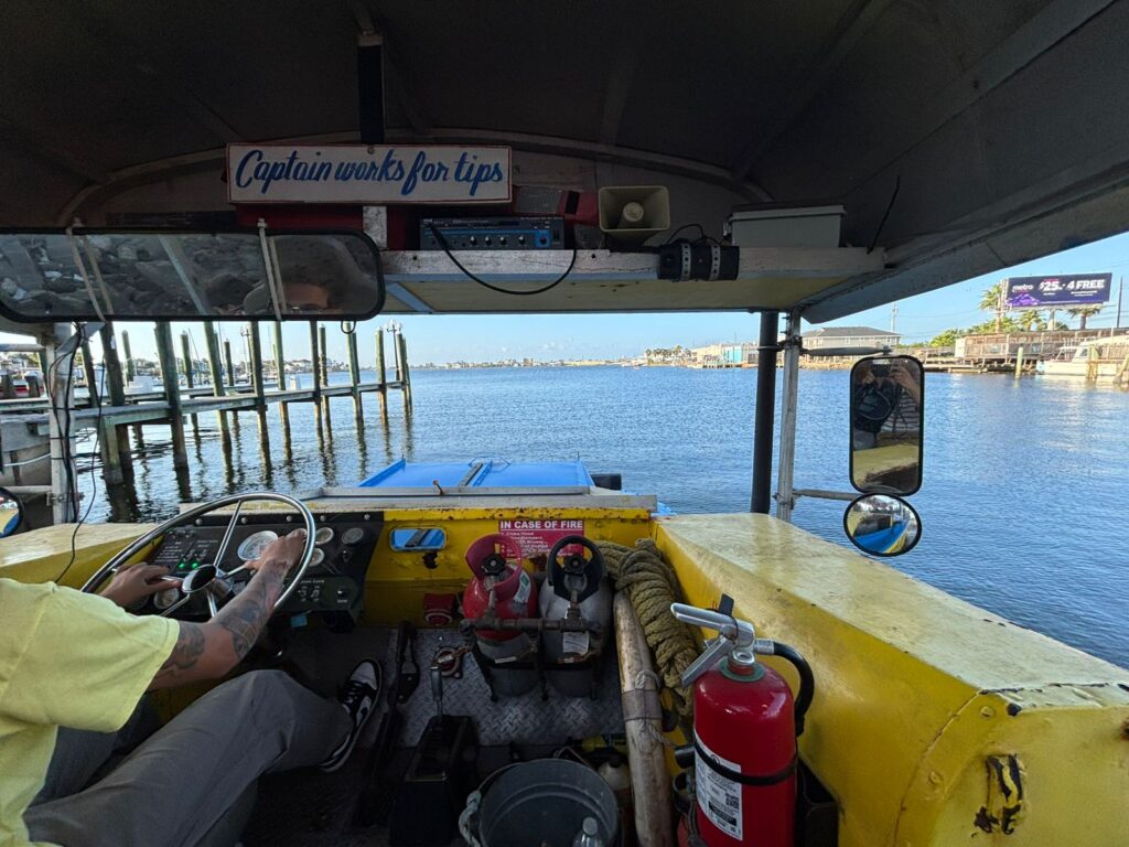 今回は、市内と海をまわる『Galveston Duck Tours』を体験しました。